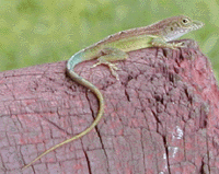 The lizards are the most conspicuous component of Jamaica's reptile fauna. They are diurnal and often sit exposed on tree trunks and branches. Males possess a colourful throat fan which they display often. Up to 6 species may coexist within the Cockpit Country. A distinctive form of Anolis garmani not among those currently granted taxonomic recognition in Jamaica has been collected from an isolated location along the Burnt Hill Road (Lazell 1996).