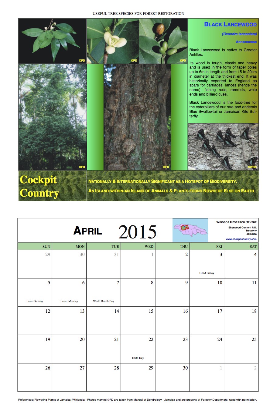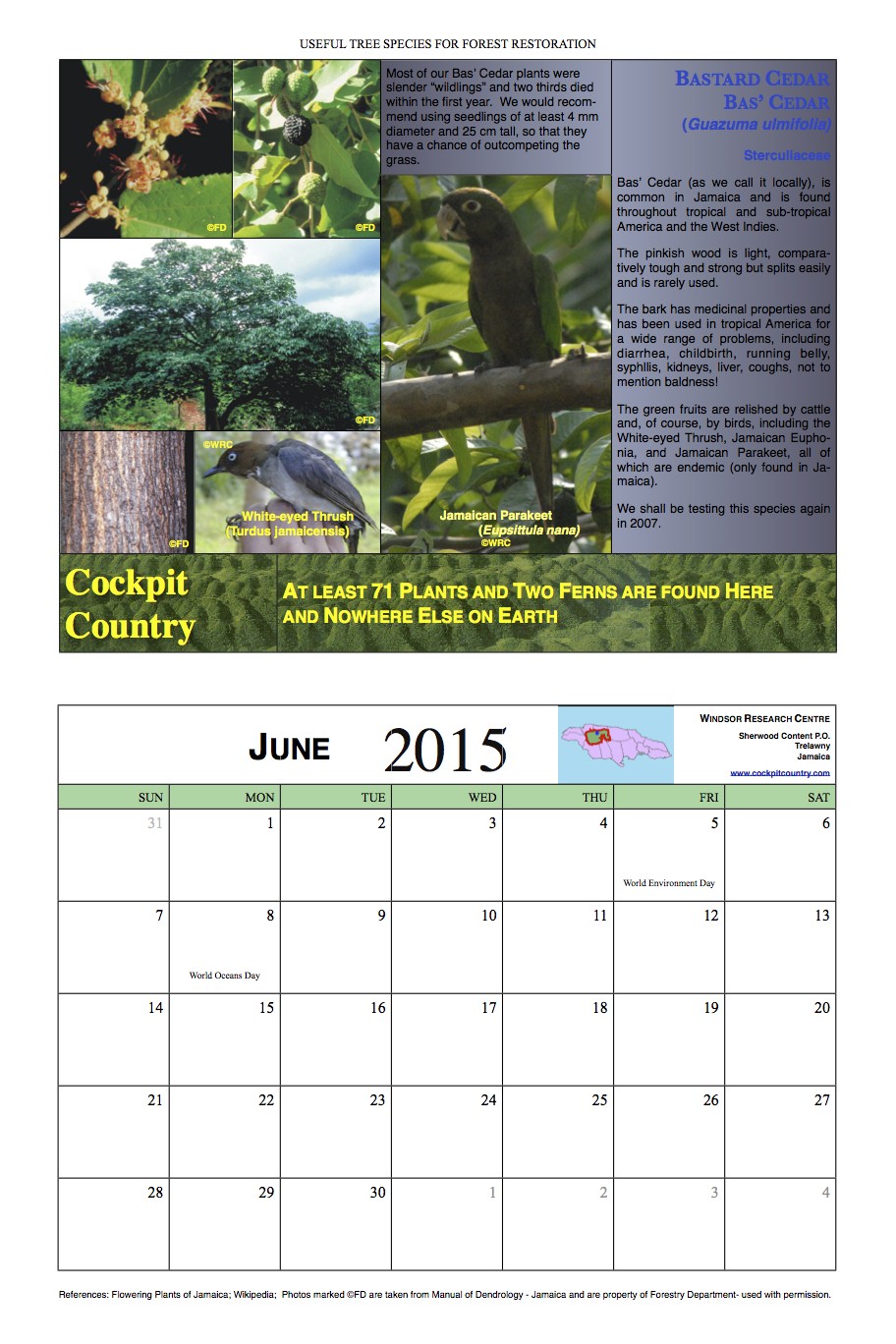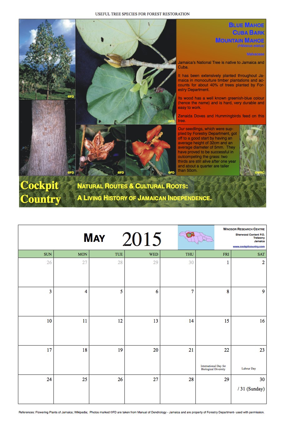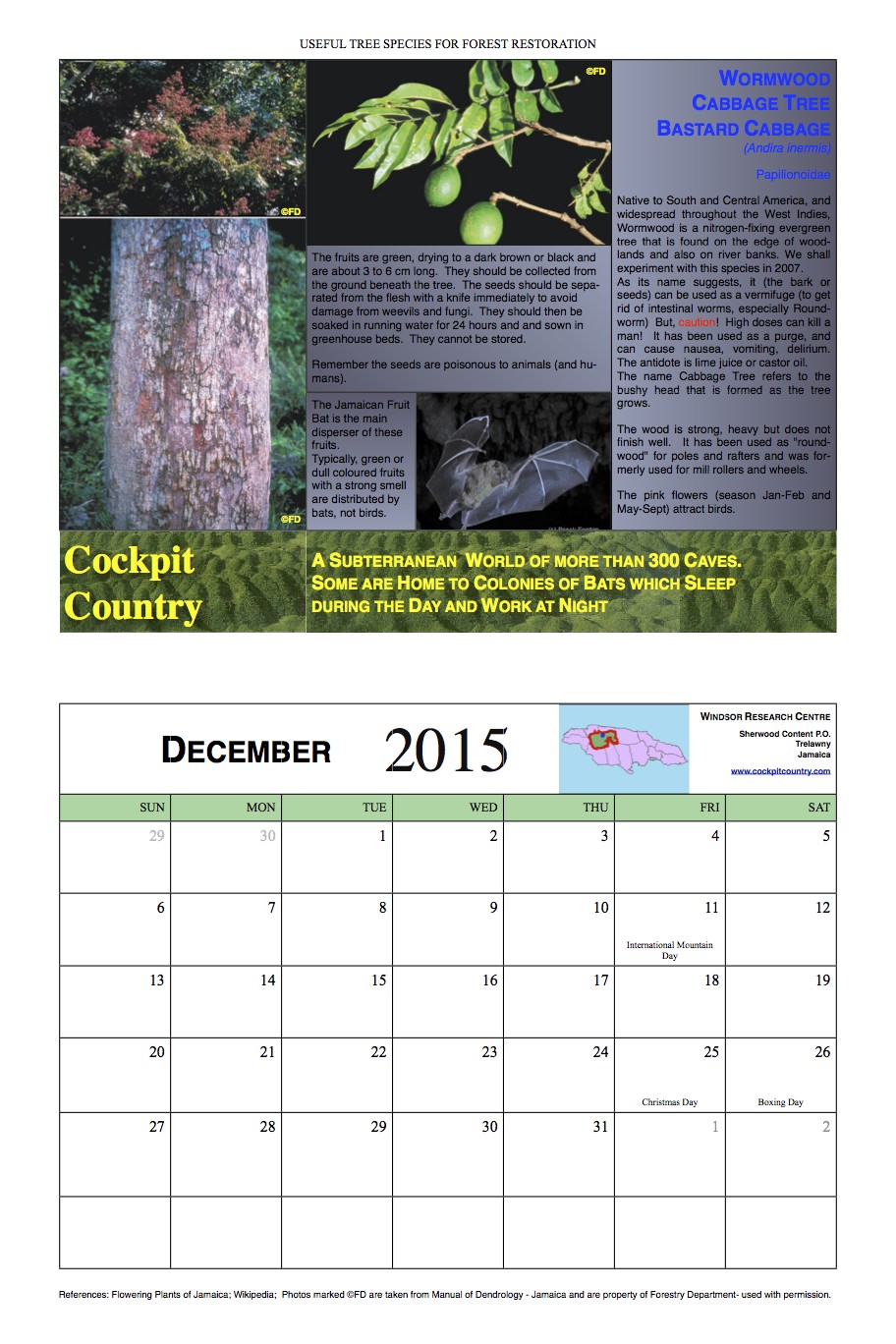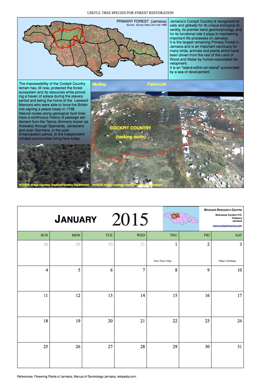 The original calendar was prepared and printed with the support of the United Nations Food and Agriculture Organization (UN-FAO) and the National Forest Programme Facility. Pear Tree Press (Kingston) gave us enormous support with the original print run.