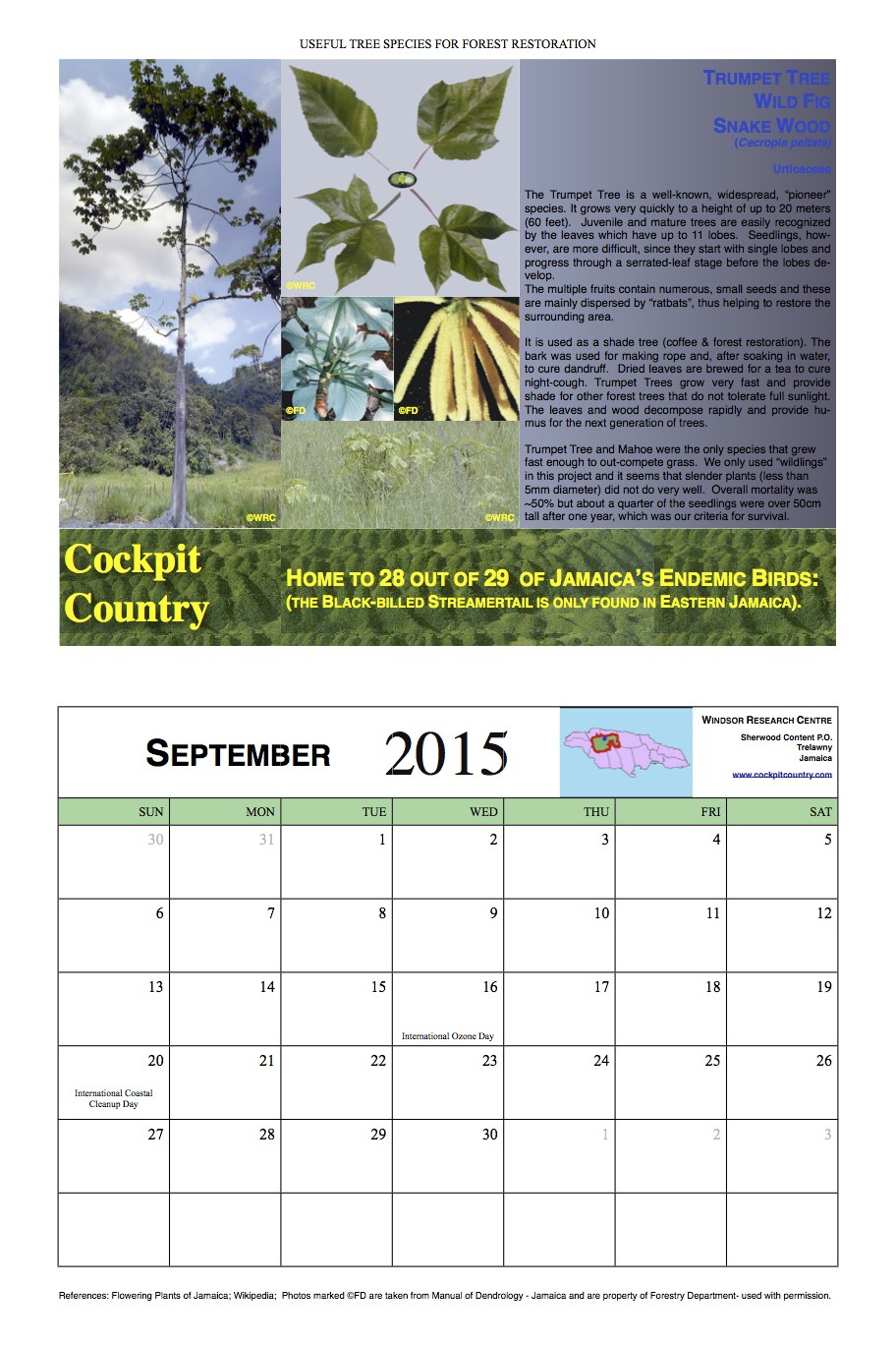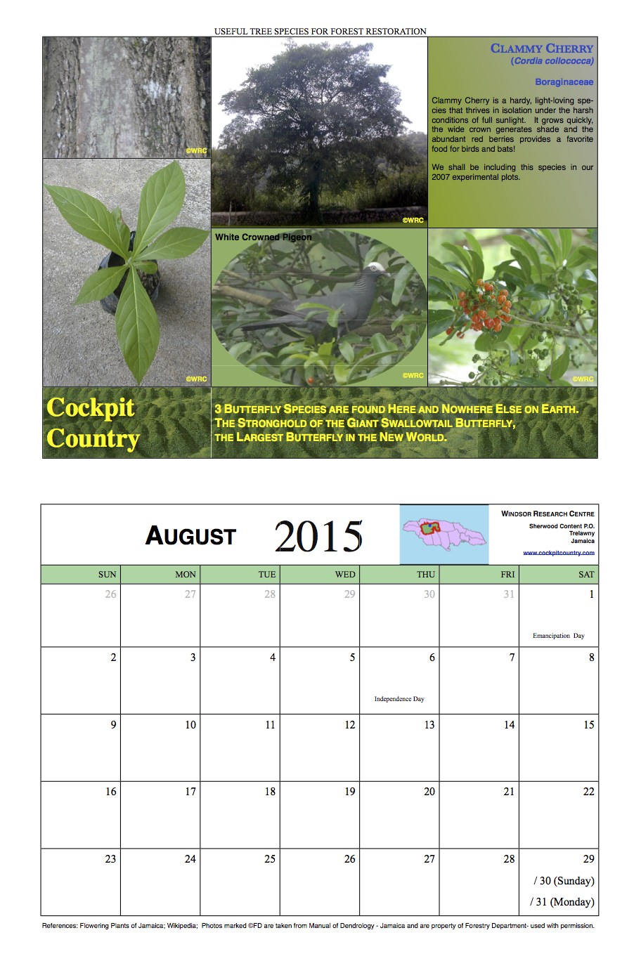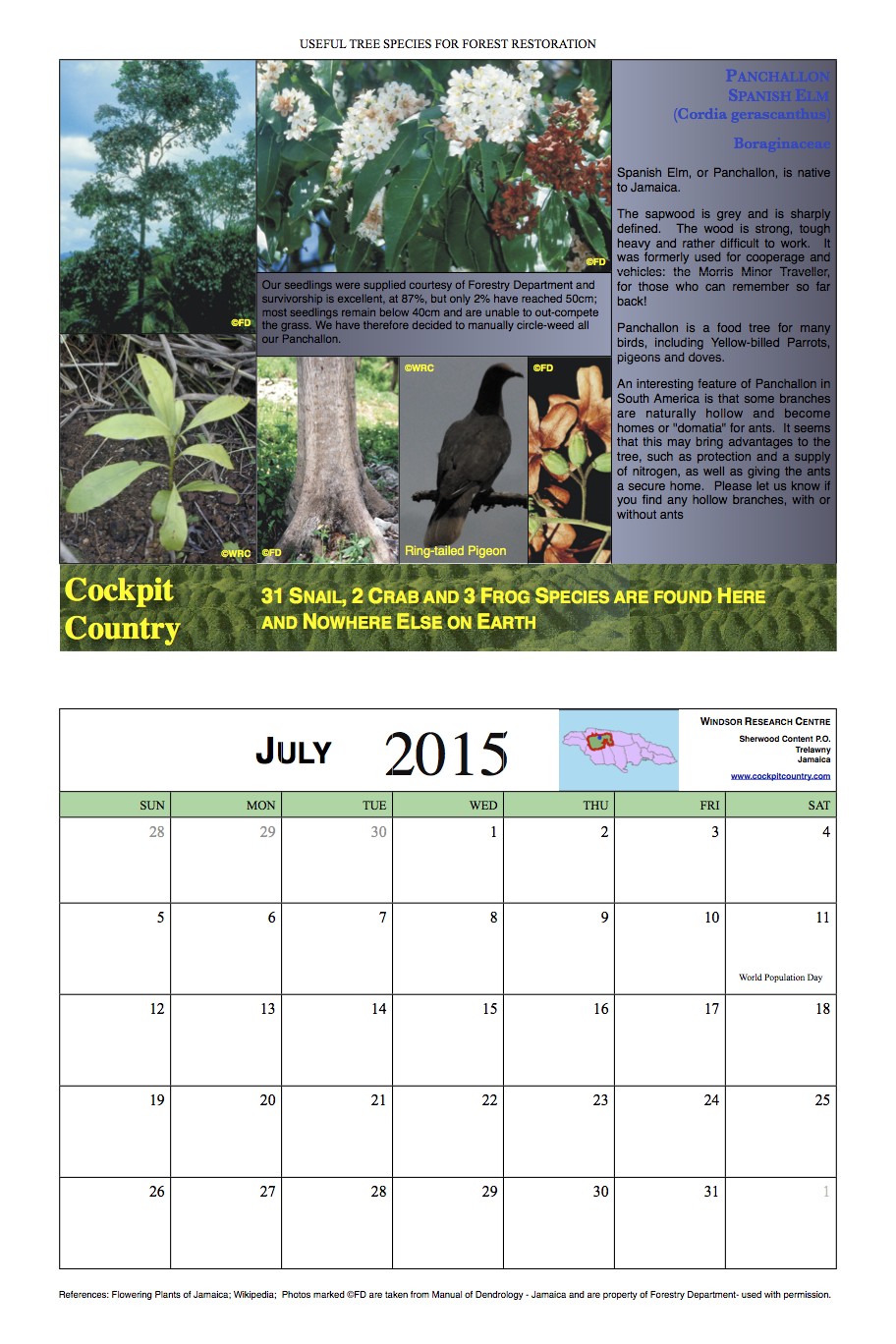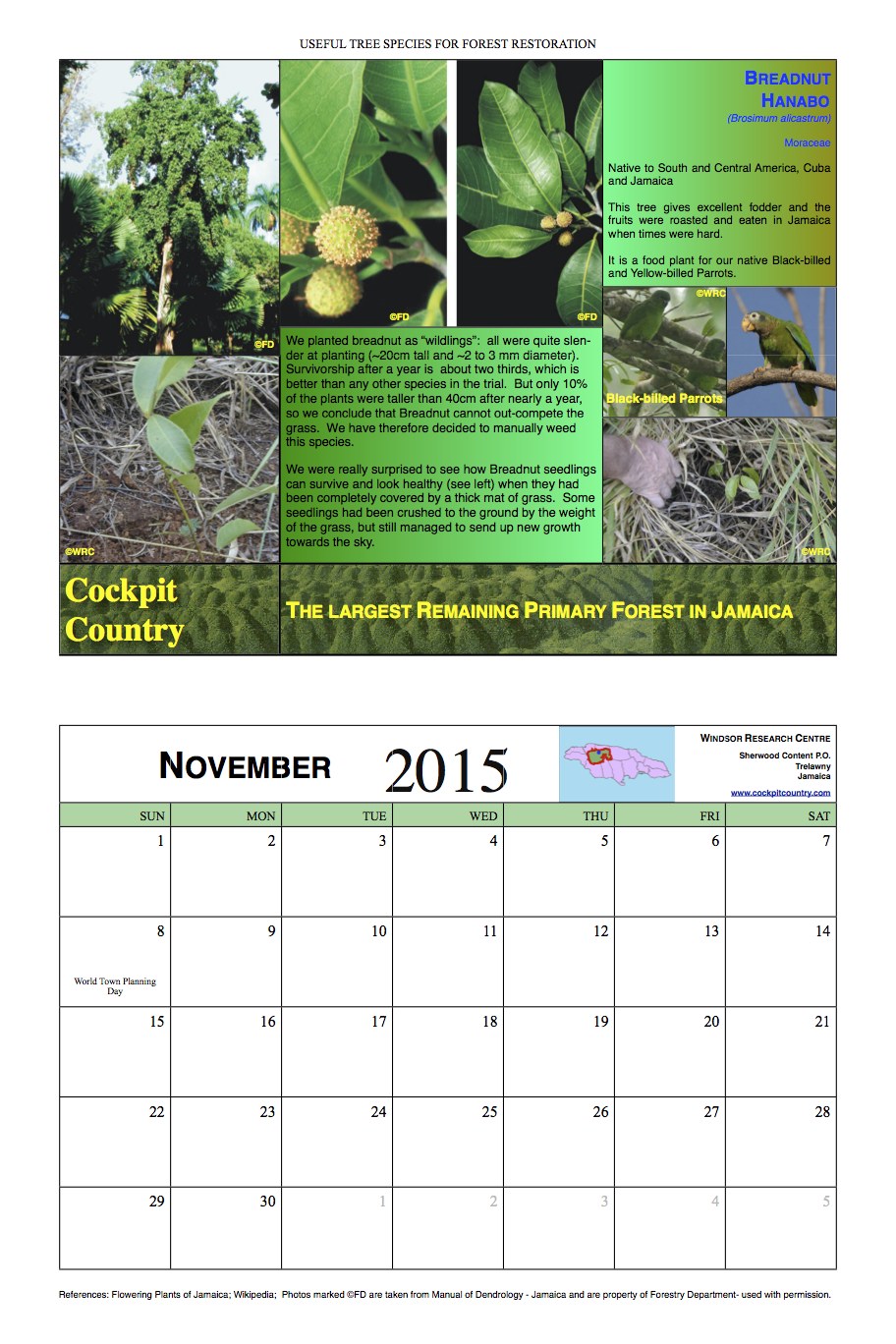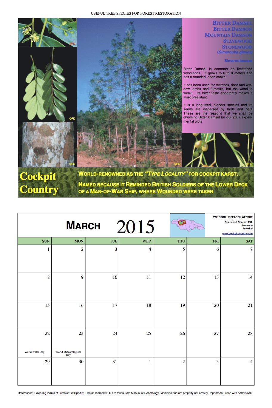 The original calendar was prepared and printed with the support of the United Nations Food and Agriculture Organization (UN-FAO) and the National Forest Programme Facility. Pear Tree Press (Kingston) gave us enormous support with the original print run.