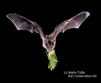 grasshoppers and katydids – insects that can cause damage to the leaves of sugarcane. With his big ears, Macrotus could have found insects