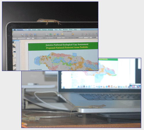 hours and hours on the computer. And computers generate lots of great heat for warming a chilly lizard!