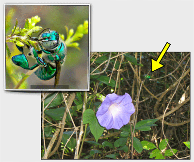 Males can then release these volatile “fragrances” at display sites in the forest understory, where matings occur. He can produce a “pure” fragrance if he visits only a single species of flower or he can create a “blended” fragrance. Whether it’s the plants leading the male bee (e.g., a plant “wants” to make sure a pollinator visits the same species to ensure effective cross-pollination) or the female bees are showing a perfume preference so the male has to make sure he hits the right combination of flowers, we really don’t know. But, as parfumiers go, Euglossine bees are merveilleux.