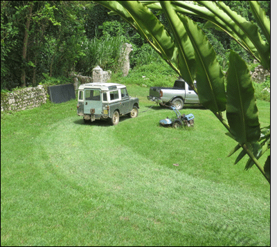 Mr. Mike really did say once, "It's actually not as hard as one would imagine to drive the 160 km from Kingston to Windsor with no clutch and a dead starter motor, you just hope you don't hit rush-hour traffic at Three Mile." (As the passenger, my response as we were just passing Duke Street in downtown Kingston was, "ummm . . . you do realize that it's 4:50 pm?" And, as a passenger again, I can attest that there is nothing more miserable than sleeping overnight in the cab of a TDI Defender -- but that was a different expedition to Spring Vale, where we found ourselves spending two hours winching our way out of a sodden sinkhole, thanks to a single coconut tree in said sinkhole, only to discover that the dry river bed we crossed on our ingress was now a torrential river (hah, I get the name "Spring Vale" now!) on our egress . . . and, yes, the starter motor was still dead and a tyre had a slow leak so we had to wake-up every two hours, roll-start the vehicle so we wouldn't completely discharge the battery while pumping up the tyre . . . so we could then roll-start in another two hours to see if the river had gone done yet . . . it did by 4 a.m. OK, I know I'm stupid for always riding along as passenger, but I always plan ahead and carry water and snacks!)