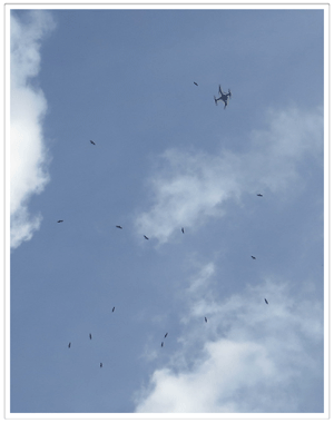 And there they were, within 45 seconds of the drone reaching its pre-determined height, 3 or 4 Turkey Vultures starting to circle overhead, always above the drone, never dropping below it. During one of the most magnificent “kettle assemblages”, 30 vultures came to investigate. Clearly, the scent of decaying flesh isn’t the only thing to which they pay attention in their environment. So, time to see what the literature says.