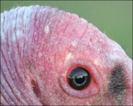 For those of you who aren’t immediately attracted to a baldy, sunburnt-red head, you might still be interested to learn that, as scavengers of carrion, the 23 species of vultures around the World perform an outstanding ecological service for humans. By rapidly and efficiently consuming carcasses, particularly dead livestock, vultures clean the environment and help protect humans, livestock, and wildlife from infectious diseases. If an animal dies from e.g. botulism (a bacterium which can also kill humans), vultures can feast on the carcass without any problems: their stomach acid is at least 10 times that of humans, so a vulture’s gut destroys huge amounts of potentially pathogenic bacteria. In another "don’t read immediately after lunch" study by Gary Graves and colleages at Aarhus University in Denmark, they discovered that Turkey and Black Vultures can have on their heads an average of 528 different types of bacteria (incl. those which cause botulism, gangrene, and tetanus), but about 85% of these pathogens are eliminated by the time everything was digested – vulture poo is astonishingly clean! Most important, the infectious carcasses on which they dined were removed from the environment, preventing other hungry animals from becoming either a victim or vector for whatever killed the first animal. Very useful, indeed!