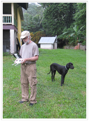 Then joy oh joy, the tablet arrived, software was updated, lithium ion batteries charged . . . "bee dee dee deep," the green lights twinkled like peeny wallies (aka Click Beetles, aka Elateridae) indicating “all systems communicating”. And the man who worked on Concorde, lectured for AirBus in Toulouse, and developed the entire maintenance training programme for Air Jamaica (i.e., if you need an AirBus overhauled, bring it to Mr. Mike . . . then again, scratch that idea - presumably you'd want it put back together in your lifetime). Anyway, he was all set to take his faithful 2 kg drone on her maiden flight. Fortunately, a Japanese film crew had used one here in 2014, so we knew what to expect, especially that annoying whining noise . . . which we quickly learned to love because, gosh, when you lose visual contact with your faithful drone and you start sweating over whether the “return to home” command is going to fail . . . nothing is more reassuring than hearing that damn irritating whining, whir!