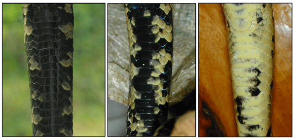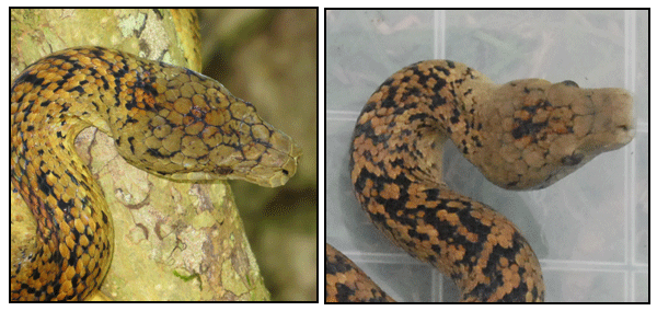 Although every Jamaican Boa has a unique colouration pattern, this changes subtly over time. In order to identify all boas that we encounter and to determine growth rates and life span for those animals which we are lucky enough to re-encounter, we inject a very small microchip under the skin, on the left side of the boa's body about 5 cm in front of the vent.