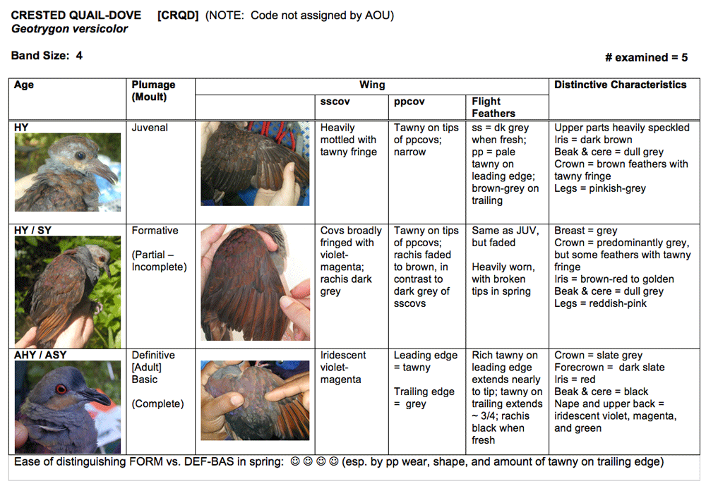 The HY was netted 17-September-2008 and had emerging pin feathers on head and body. Another HY netted on 25-September-2004 had a few pin feathers in the auriculars but sscov moult had been completed.