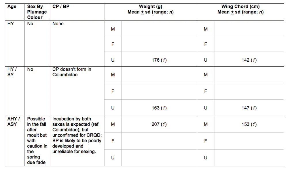 In large Columbidae, the cloaca can be examined for conical papillae, to aid in the identification of males – but this requires proper training in the technique. We did not have the proper equipment, so made no effort to examine.