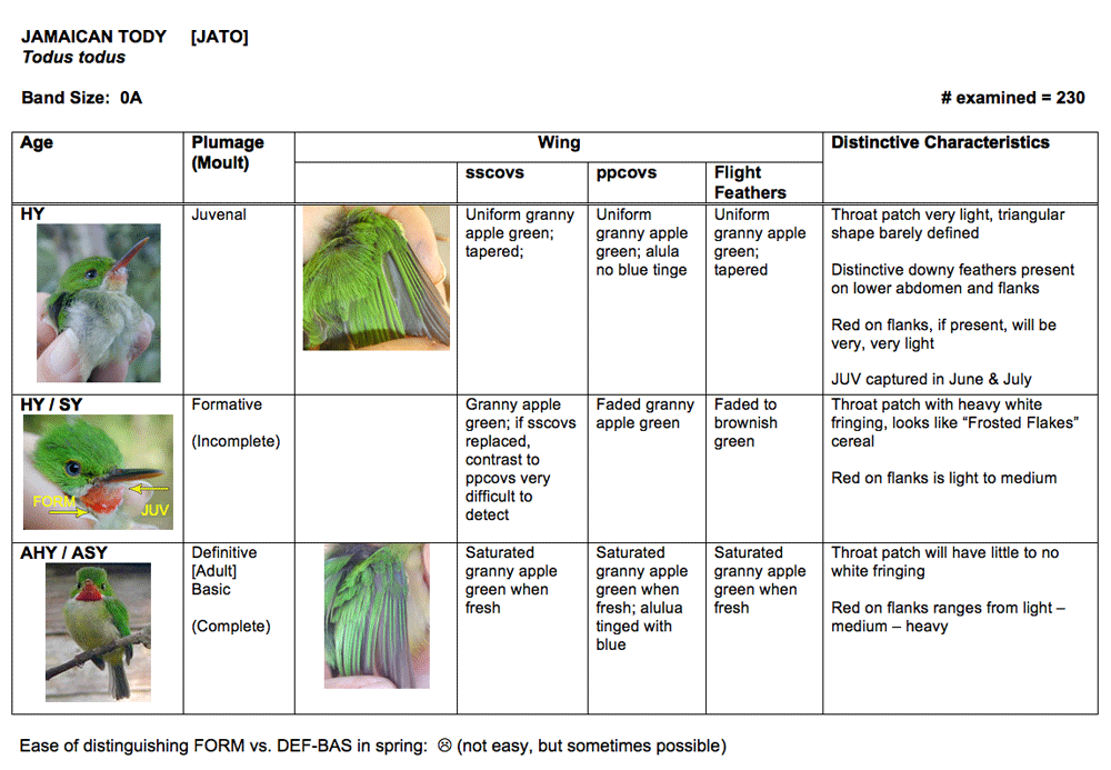 Pyle, P., A. McAndrews, P. Velez, R.L Wilkerson, R.B. Siegel and D.F. DeSante. 2004. Molt patterns and age and sex determination of selected southeastern Cuban landbirds. J. Field Ornithol. 75:136-145.