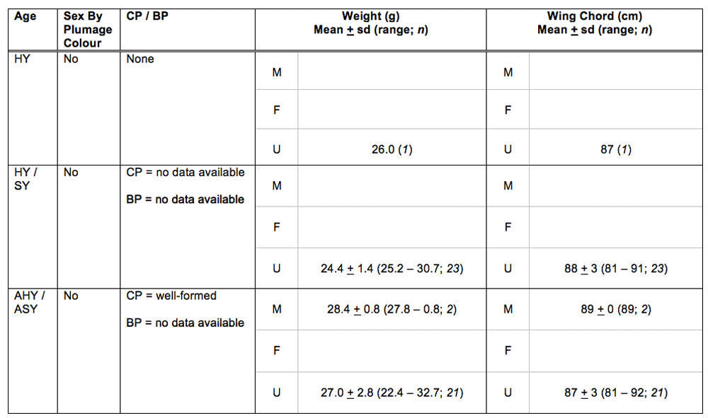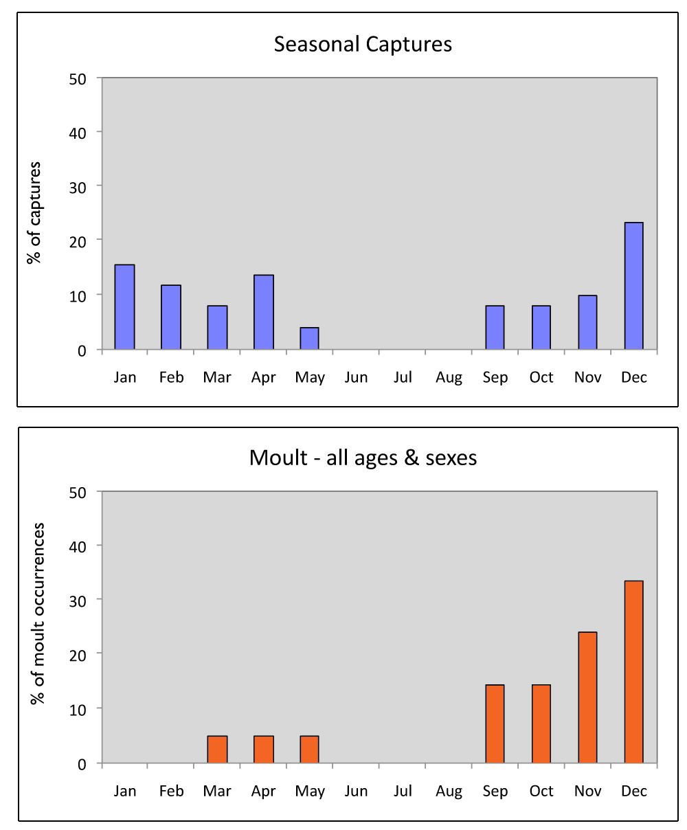 We suspect the species has a Pre-Alternate Moult, but larger sample sizes are needed.