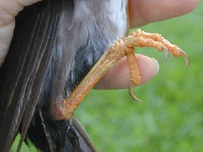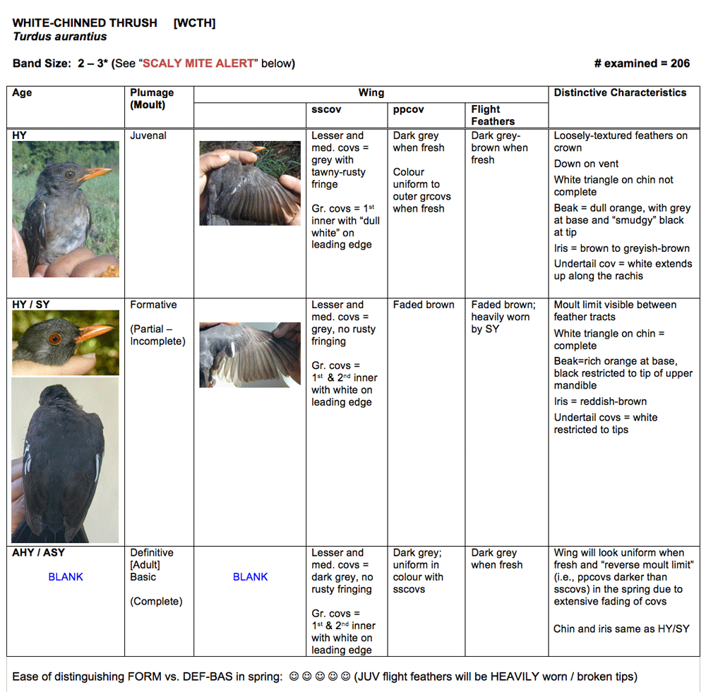 Intriguingly with our Windsor / northern Cockpit Country banding stations, White-chinned Thrush has been the only species for which we have ever detected this problem. Unfortunately, we never collected skin scrapings to have the mites identified taxonomically, but we rather suspect this might be a new species of mite which may be transmitted in the nest. |