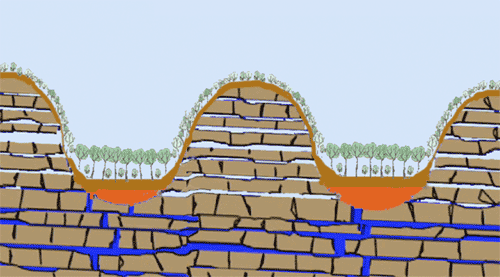 The steep-sided, round-topped hills are all around us. The best viewpoint for a polje is above Spring vale on old Spanish road to Maroon Town. There are no fossils in most of Cockpit Country (because it consists of redissolved limestone) but there are some points of interest in the Albert Town area and near Lowe River, behind the old potato packing plant.
