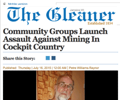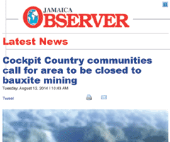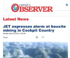 Here are the media reports relating to Cockpit Country and the bauxite mining issue in 2015