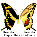 Jamaican Swallowtail (Papilio melonius). It used to be recognized as the smallest subspecies of Papilio thoas, but molecular analyses reveal it to be a unique species. Compare dead specimen with live animal on the right! |