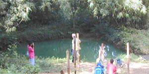 About one mile after the Good Hope bridge, the river turns northwards to the Potosi Waterboil which is a group of boiling springs at an elevation of about 25m and discharging at about 1,700 l/sec.